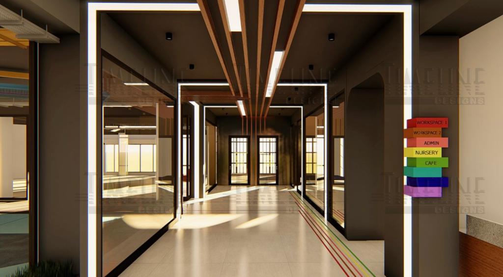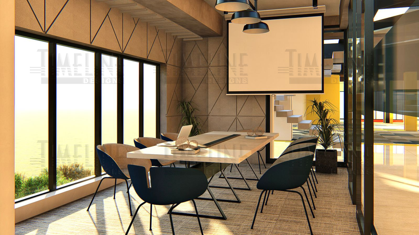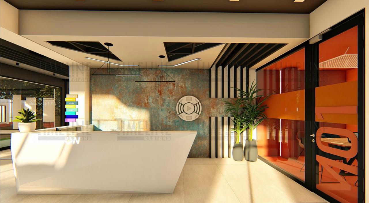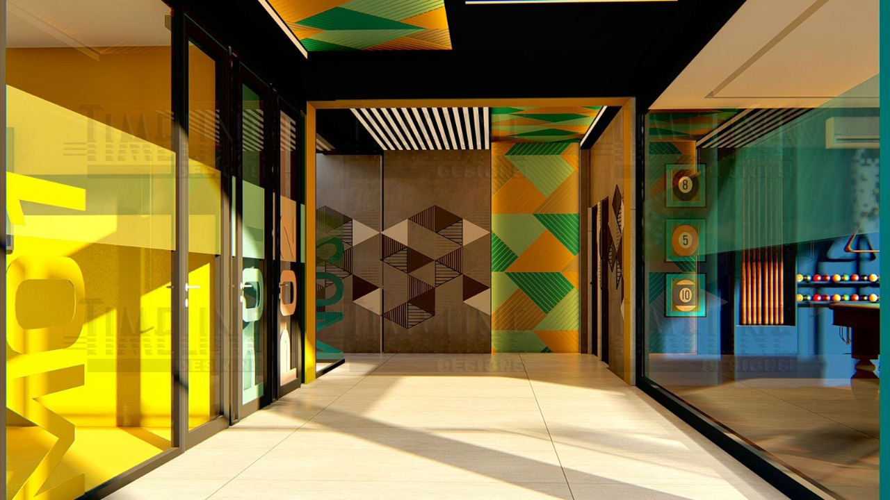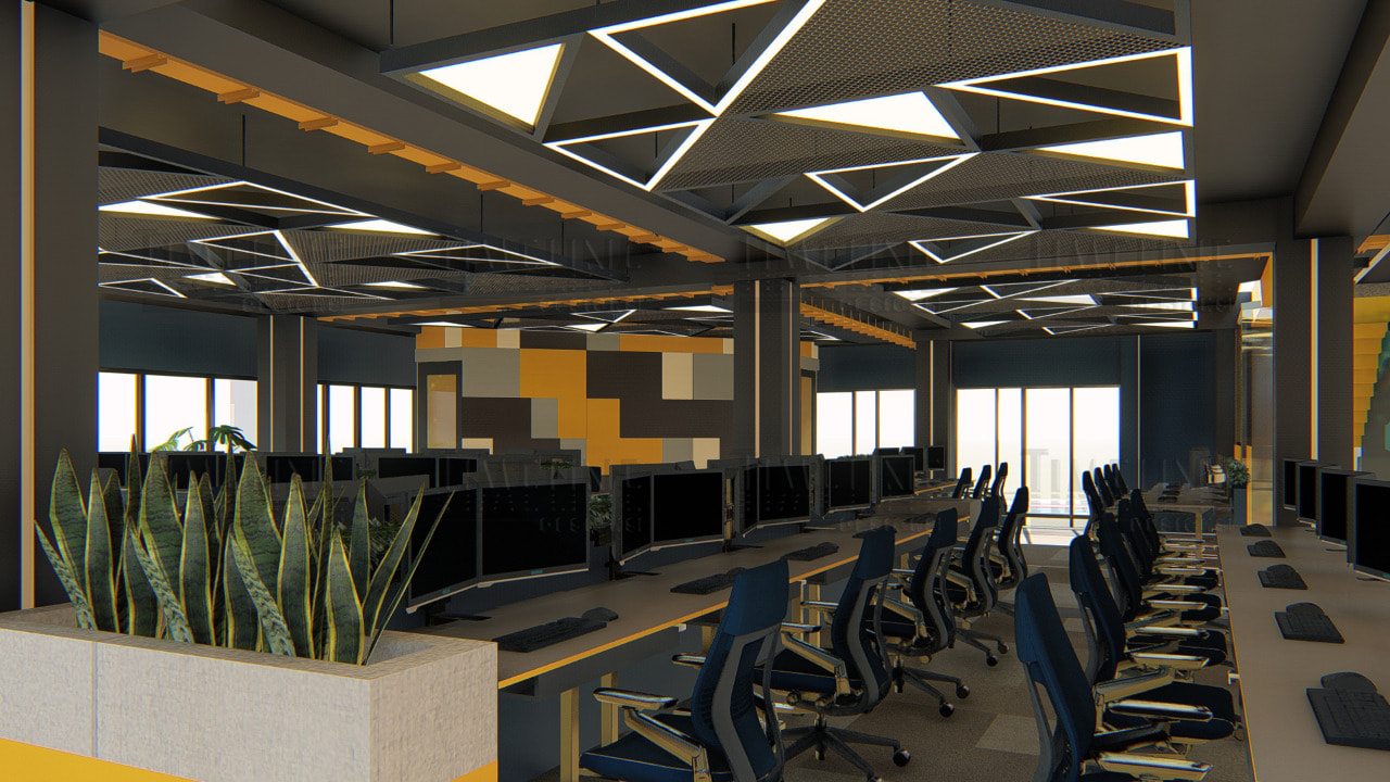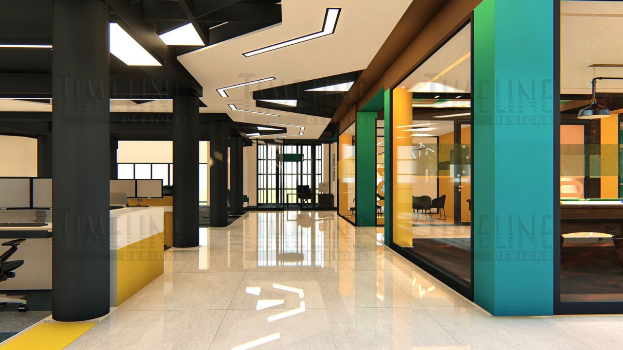 A modern office space designed with young tech professionals in mind. The design philosophy revolved around creating a youthful space that is backed by functionality and a variety of spaces to enhance each work day. This was achieved through the use of color, a dynamic ceiling, and fun and unique elements like a slide connecting the two floors.