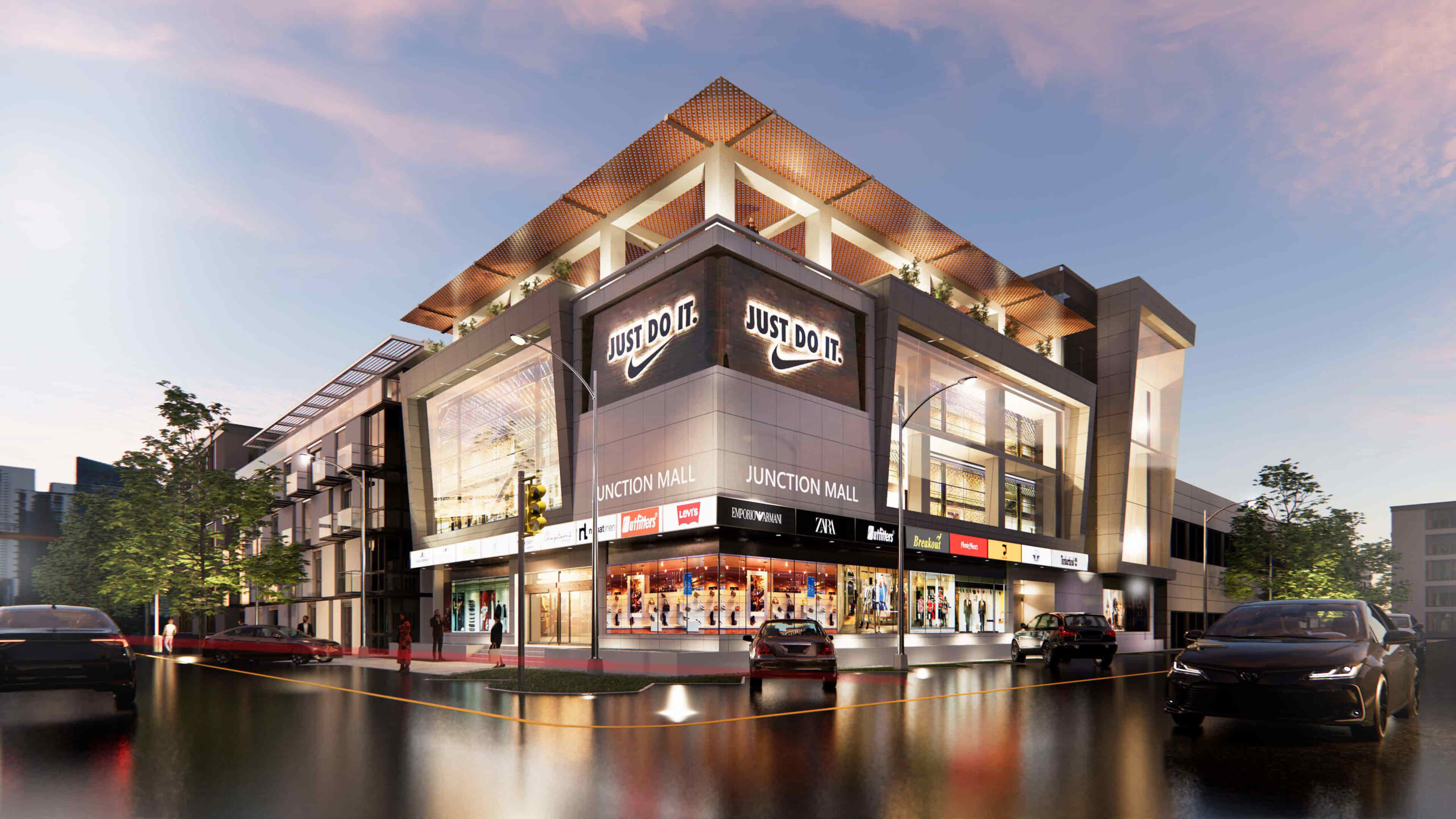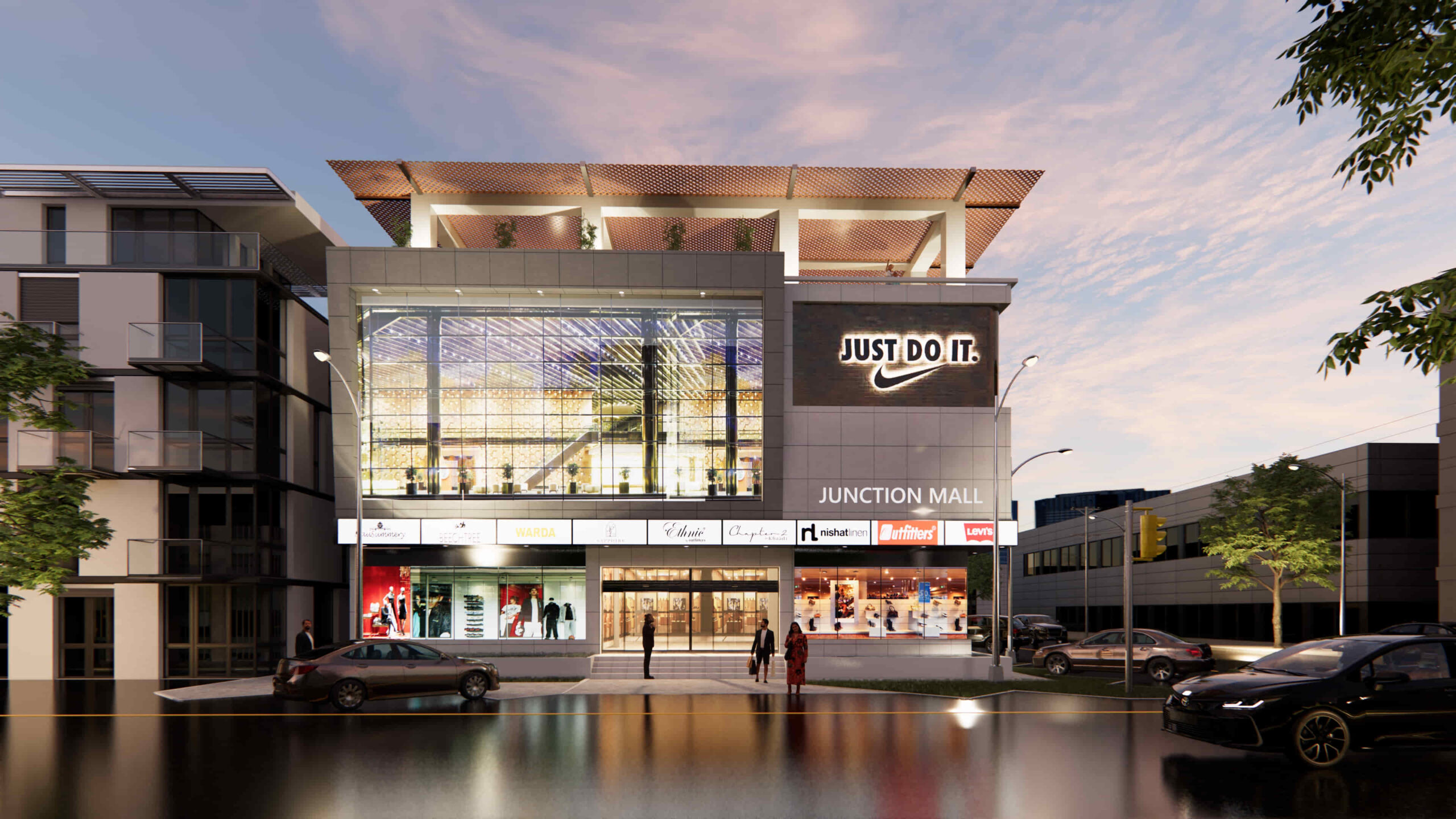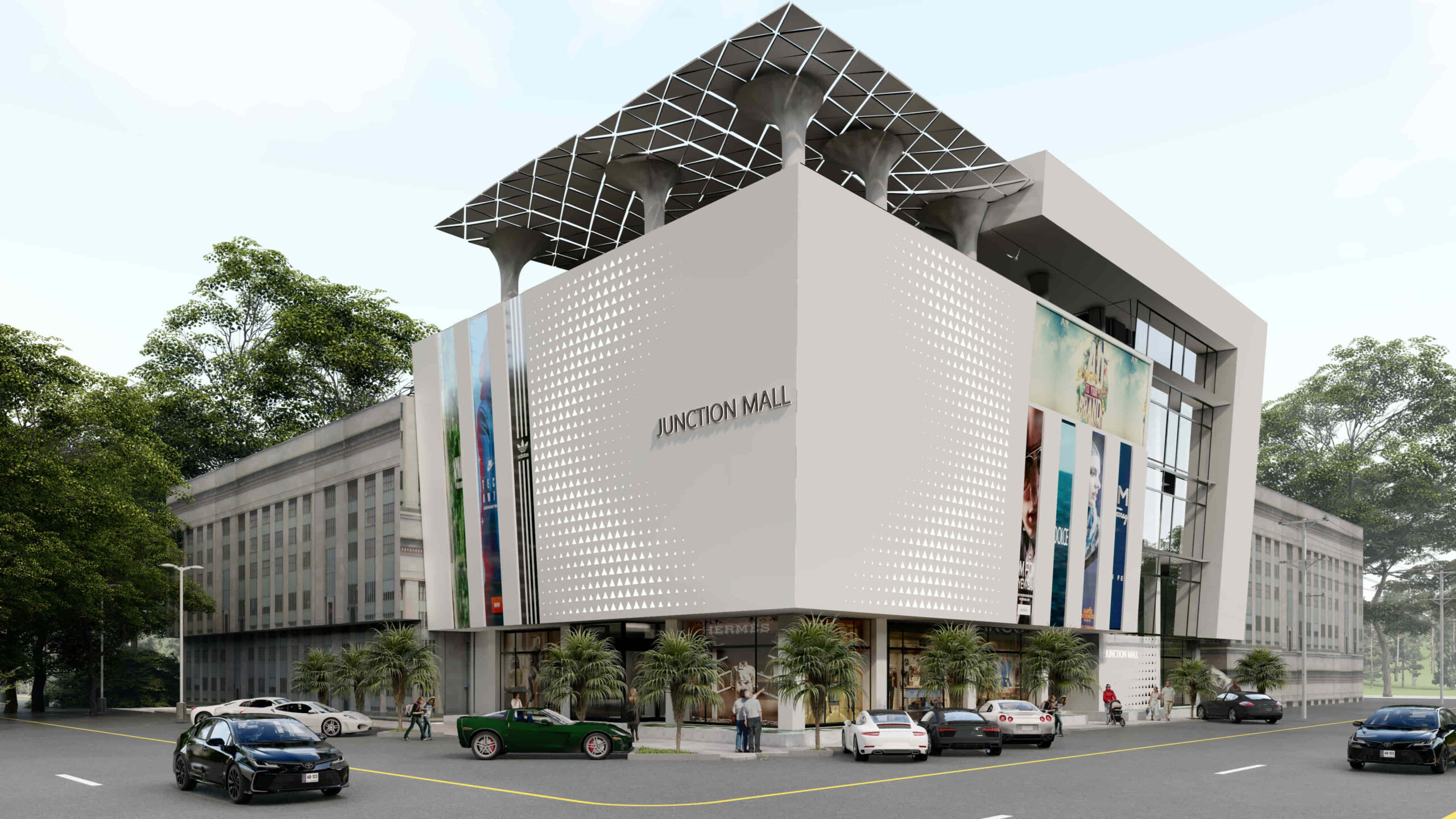 Proposals for a modern, contemporary corner shopping mall. The designs aimed to create a form that combined functionality with a dynamic aesthetic. Elements like organic columns for the rooftop and geometric perforations on the volumes made the building seem alive with movement.